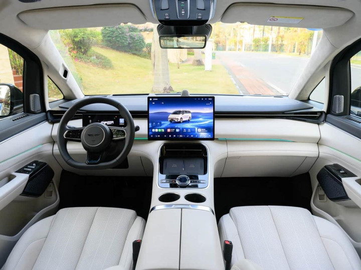 进入车内,可见新车依然是采用比较主流的简约式风格设计,而且整体的用料以及做工质感均达到同级主流水准,反正能摸到的地方都给你用上了软质皮料包裹,并配备15.4英寸悬浮式中控屏+10.25英寸仪表盘+19.8英寸AR-HUD的组合。
