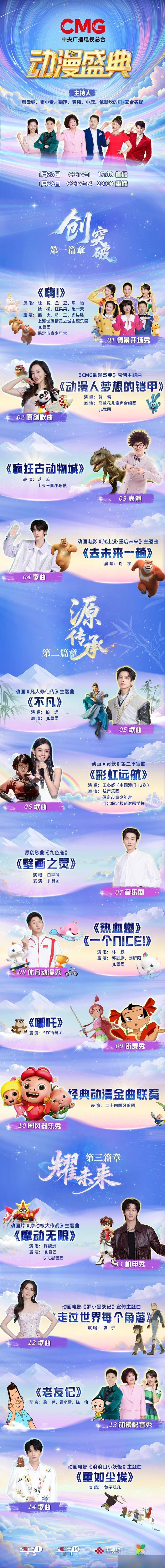 #CMG动漫盛典节目单#新鲜出炉!机甲秀、音乐剧、国风器乐联奏等节目精彩集结,虚拟制片、AR技术打造沉浸式舞台,更有行业嘉宾深度对话!经典与创新交织,艺术与科技碰撞,这场国漫盛宴的每一秒都藏着惊喜,乐鱼体育官网速来蹲守你的最爱!1月25日17:30,锁定CCTV-1综合频道、央视频、央视少儿客户端,1月26日20:00,锁定CCTV-14少儿频道,和鞠萍、@小鹿姐姐xl、@毛毛虫-霍小雷、黄炜、@杜悦杜小乐、金豆、陈怡、@徐柳、红果果、赵一天、@蔡云咏Caiiiii、依斯@名字贼长的依斯、@韩雪、芝麻@媒体人媒体人刘洋、@土豆王国POTATOKINGDOM、@刘宇Yu_、@伯远、@王心妤Macau、@白举纲、@L-Y林跃DIVING、STC街舞团、二十四国风乐团、@许魏洲ZZ、@弦子Stringer、@黄子弘凡_Lars一起奔赴#CMG动漫盛典#之约~#中国动漫大事件#