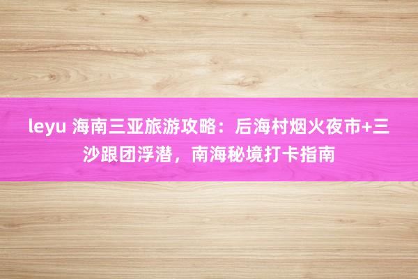 在南海之滨的三亚,海浪不只是沙滩的伴侣,更串联起两种极致风情——后海村的烟火气藏在椰影灯火间,三沙的秘境美沉于琉璃碧海下。这座被阳光偏爱的城市,从不缺风景,却以“烟火夜市+深海浮潜”的独特组合,让旅行跳出同质化套路。以下这份聚焦核心体验的海南三亚旅游攻略,带你精准打卡后海村烟火夜市与三沙跟团浮潜,解锁南海独有的浪漫与惊喜。海南吉宏道旅行社:135*18+80}00-76 一、三亚:烟火与秘境交织的南海坐标 不同于大众对三亚“纯度假岛”的刻板印象,这里的魅力在于多元风情的碰撞。......