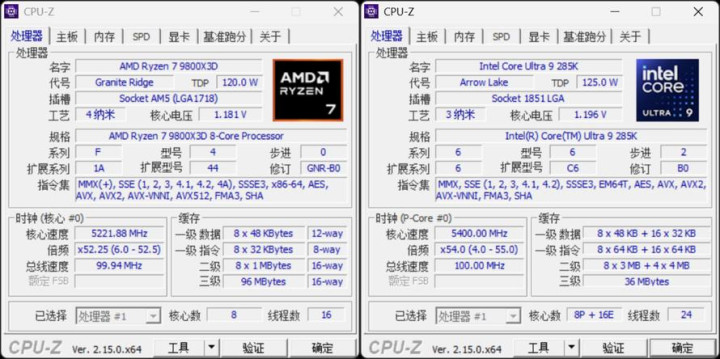 单从核心规格上来看,锐龙7 9800X3D是一颗传统的纯大核设计的8核16线程处理器,Ultra 9 285K则是沿用了Intel自12代酷睿起就使用的大小核混合架构,Ultra 9 285K拥有8个性能核(大核)、16个能效核(小核),共计24线程。在任务管理器中数圈圈,Ultra 9 285K已经赢了,但是打游戏则另当别论,针对多核心优化的游戏依旧是少之又少,特意优化能效核的游戏更是凤毛麟角。