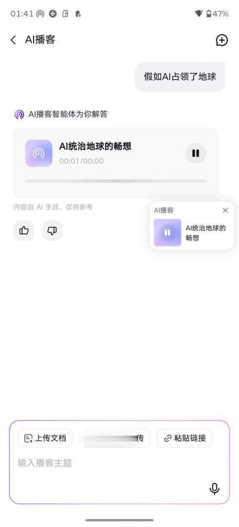 AI播客功能可为用户提供了更加丰富的音频体验。用户可以通过AI播客功能收听各种类型的播客节目,包括新闻、娱乐、教育等。同时,AI播客功能还支持智能推荐功能,根据用户的兴趣和喜好,为用户推荐适合的播客节目。