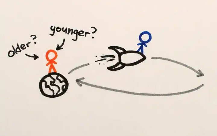 “双生子悖论”,是狭义相对论中最知名的想想执行之一,也频频被用来解释时期彭胀效应。这个执行的场景很粗浅:有一双双胞胎,哥哥乘坐火箭,以接近光速的速率进行天外旅行,弟弟则留在地球上。哥哥在天外中绕着星河系旅行了一段时期后,复返地球,那么,此时哥哥和弟弟的年级,会有什么各异?