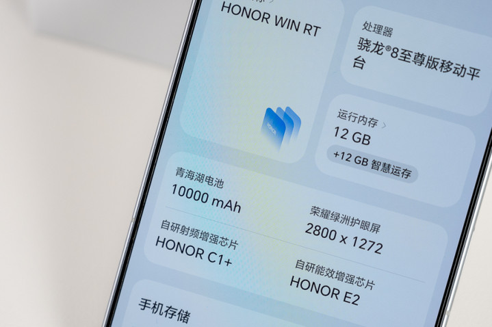 荣耀WIN RT搭载骁龙8至尊版处理器,同时还配有LPDDR5X Ultra内存以及UFS 4.1闪存,软件层面还有荣耀幻影引擎3.0加持,散热则是有我们前面提到的东风涡轮散热。