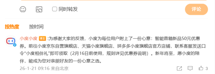 小度就智能音箱默认音色变更致歉,已修复并提供50元新品优惠券