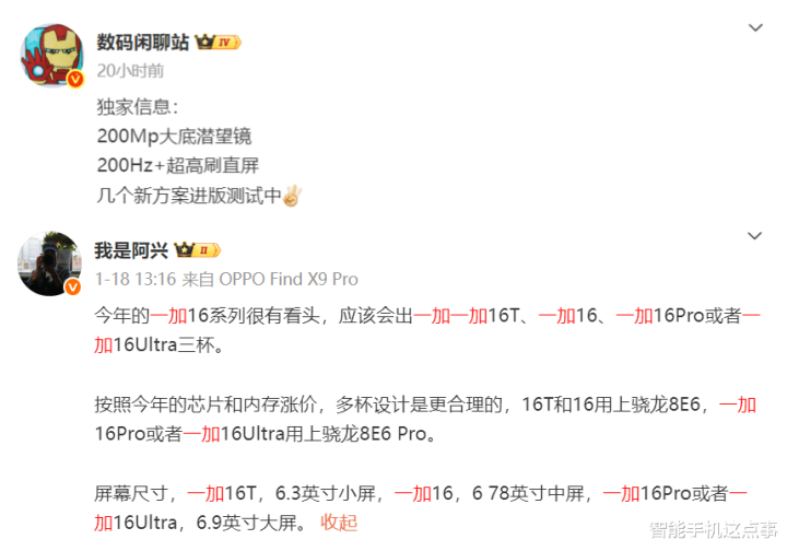 {jz:field.toptypename/}然而近期来自社交媒体及供应链的密集爆料显示,一加16系列正准备以一种近乎“疯狂”的姿态回归。