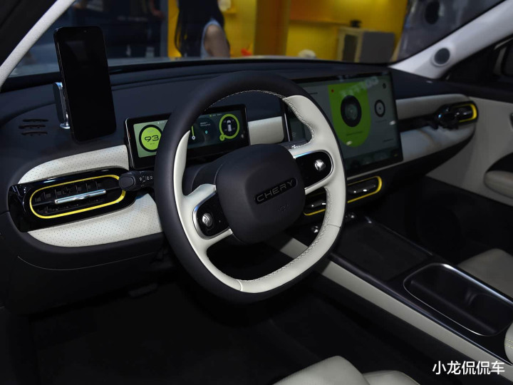 进入到车内,迎面而来的是奇瑞QQ3EV简约且时尚的内饰设计,新车采用了黑白为主调并搭配换色饰条点缀的内饰配色,显得很年轻;此外,新车在中控位置配备了两块大尺寸的屏幕,所以内饰的科技感也呈现得不错;还有奇瑞QQ3EV在内饰用料方面的表现也要比同级别的本田飞度等车型更为出色一些,因此,内饰还有着同级别车型少有的精致感。配置方面,例如全液晶仪表、中控大屏、手机无线充电、皮质方向盘、电调座椅、后座空调出风口等配置在奇瑞QQ3EV上均有出现。