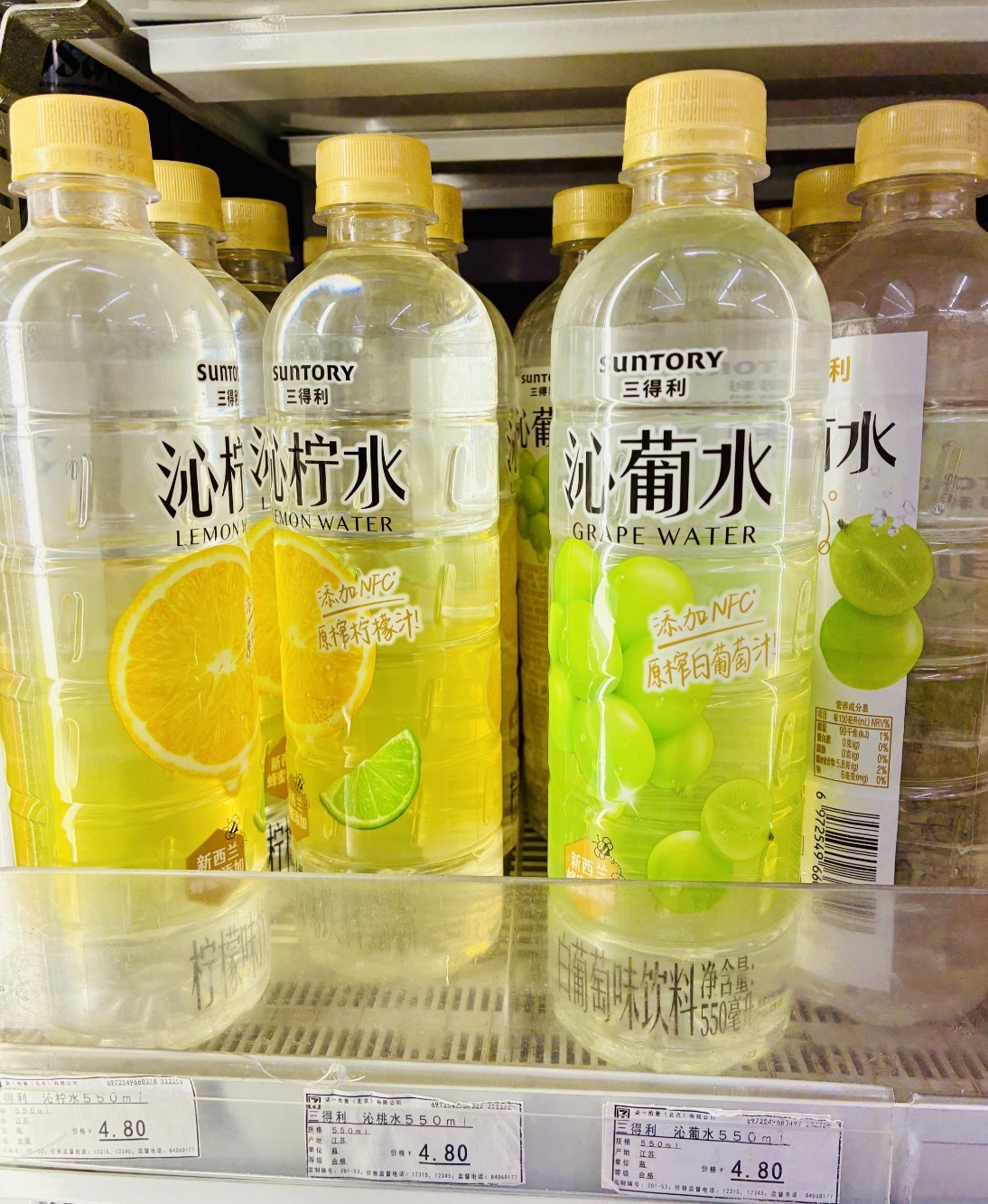此外,界面新闻在北京一家7-11便利店看到,三得利的沁葡水、沁柠水包装瓶上,也齐标有“添加NFC原榨白葡萄汁”“添加NFC原榨柠檬汁”的字样,而在这款家具的配料表上标注的NFC果汁含量为每升添加50毫克。