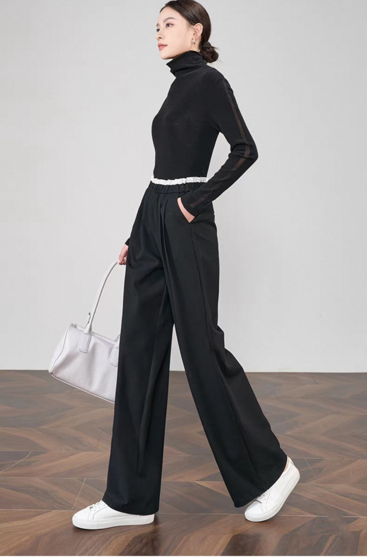 · 面料:选拔有垂坠感的天丝或醋酸面料。一条好的阔腿裤穿上后应该像水相同流滴下来,而不是像纸相同支棱着。