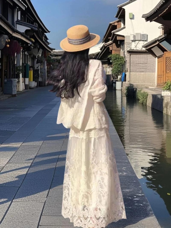 单品二:蕾丝半裙——被低估的“高定感”单品
